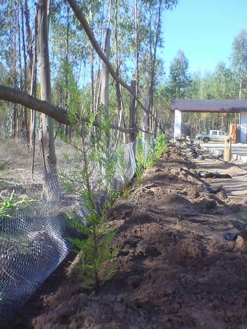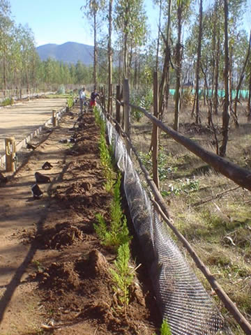 Seto o cerco vivo de peumos regados por goteo, se ve la